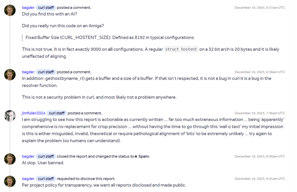 That BTW is a legit proof of AI SLOPS that excellent humans at CURL have to process regularly due to so called LLM intelligence [TRASH].